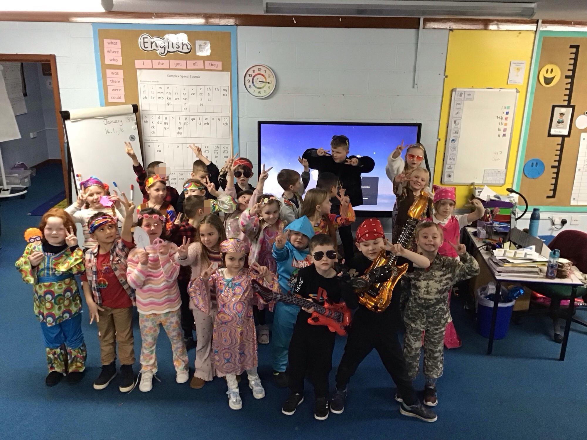 Everyone looked amazing on our Seventies Day! We did lots of fabulous activities, including tie-dying, dancing and singing to 70s songs, making a Photo Booth and playing lots of retro games!