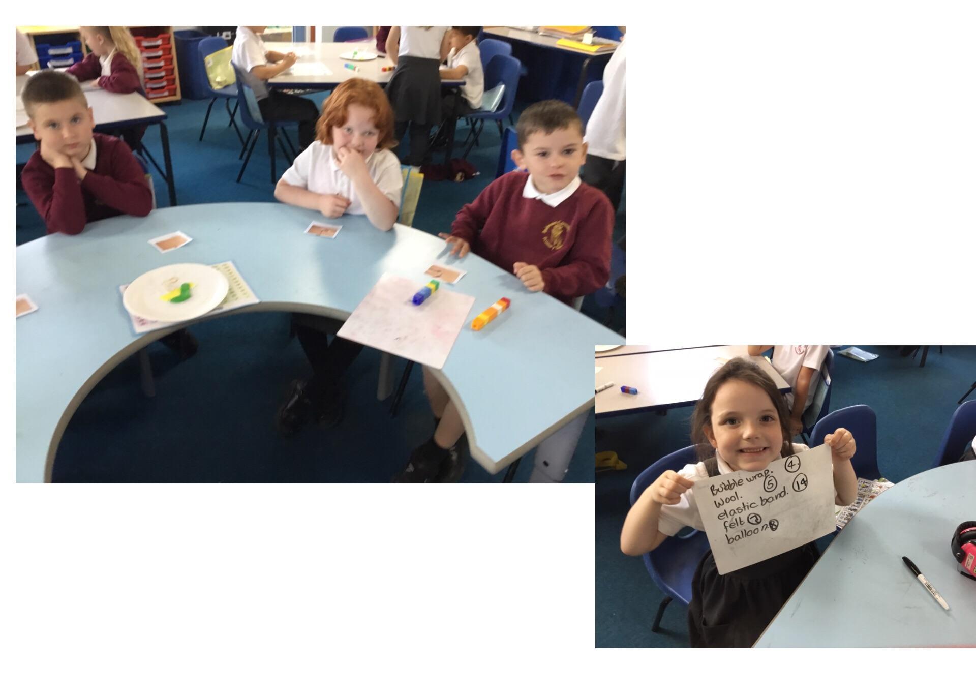 We have had a busy time during our Science lessons this term! We have investigated the question, 'Which material is the stretchiest?' by comparing bubble wrap, felt, a balloon, elastic band and wool. Our results showed that elastic bands were the stretchiest and felt and bubble wrap were the least stretchy. We have also tested the strength of paper bridges which were folded in different ways. The strongest bridge was the one folded in a zigzag!